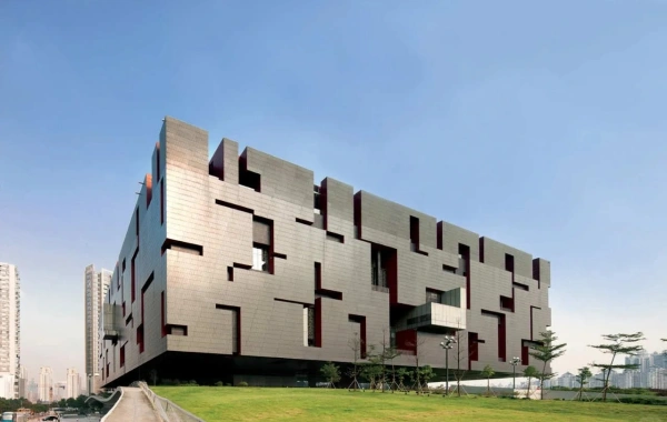 Das Design des Museums bietet eine dynamische, wellige Form, inspiriert von traditionellen Kantonessen-Töpferöfen und den Perlmutt Deltas Wasserstraßen. Es ist in vier Hauptgeschosse organisiert: