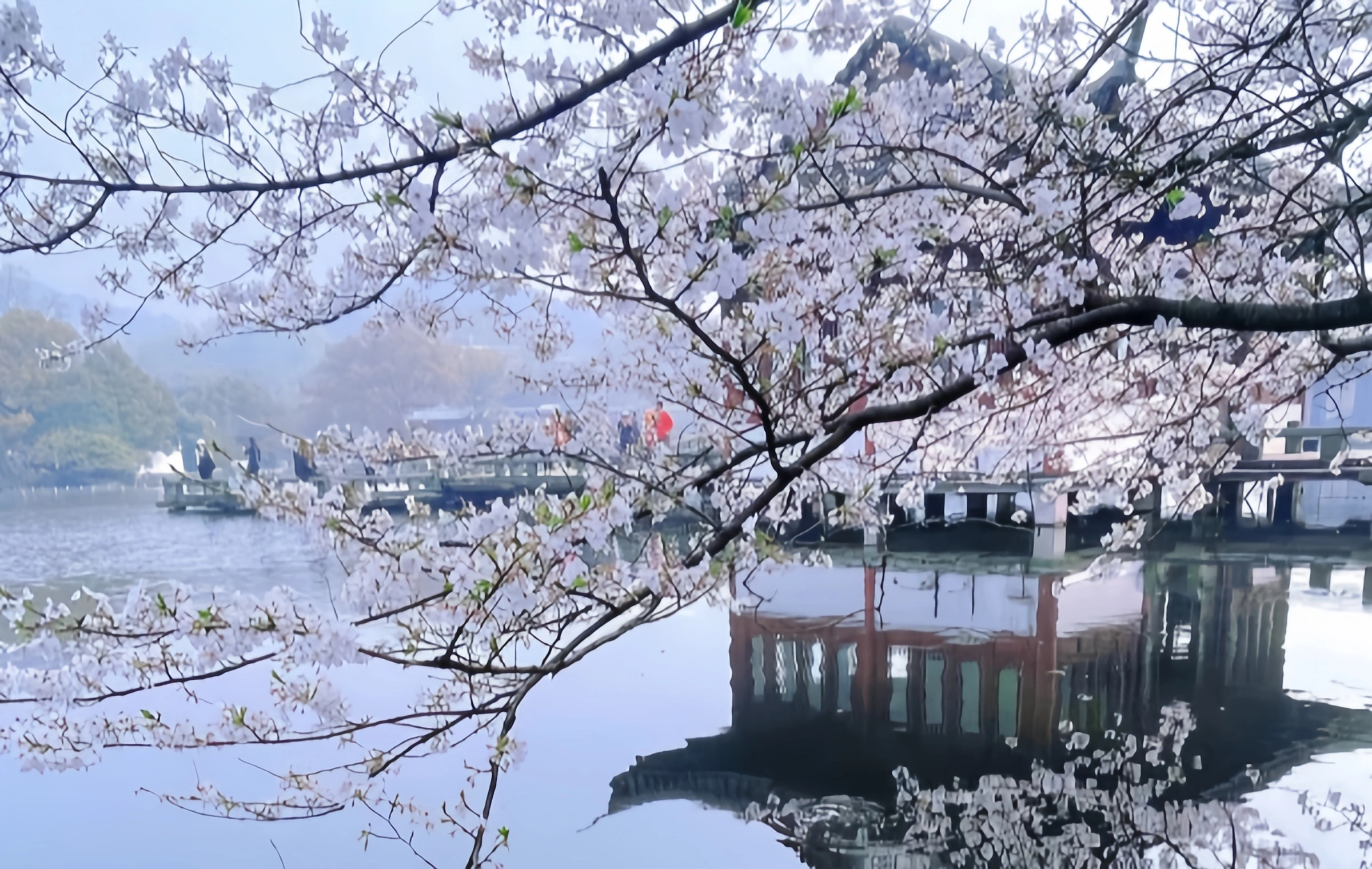 Su Causeway, a 2.8-kilometer stone path stretching across West Lake, transforms into a pink-and-green paradise in spring. Peach blossoms and weeping willows create a vibrant tapestry, perfect for biking or leisurely walks. Visit in March-April to witness “苏堤春晓” (Su Di Chun Xiao), when the causeway blooms with color. Nearby attractions include the Flower Harbor Fish Viewing Park, where koi carps swim beneath cherry trees.