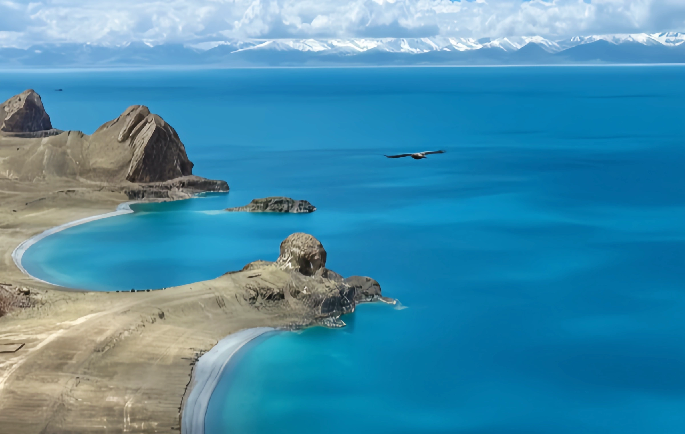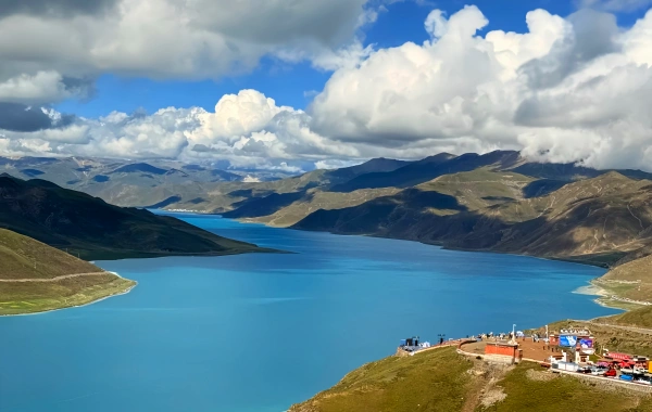 Highlights: A sacred lake shaped like a coiled serpent, Yamdrok’s electric-blue waters mirror the snow-dusted Karola Pass. Local herders graze yaks along its shores.