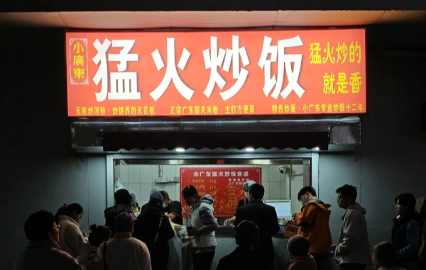 En 2025,"Xiao Guangdong Menghuo Chaofan"Devenue une sensation sur les médias sociaux, elle attire des foules dans ses étals de fin de nuit Sanlitun et Parc Chaoyang. A l'origine un vendeur non autorisé, le magasin fonctionne maintenant légalement à partir d'un petit magasin enTuanjiehu, grâce aux efforts de la ville pour équilibrer la régulation et la préservation culturelle. Le plat, du riz frit avec des œufs, des légumes et un choix de viandes, est cuit à feu vif, créant une croûte carbonisée fumée. A seulement 15 RMB (2 $), c'est un goût favorable au budget de Beijing.